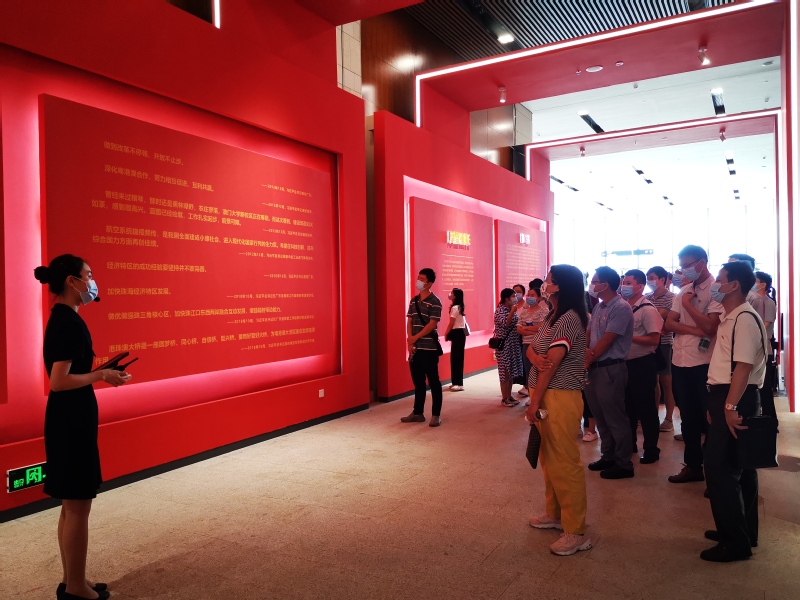 骄阳普照,云舒风和。为认真学习贯彻习近平总书记在庆祝中国共产党成立100周年大会上的重要讲话精神,继承弘扬改革开放时期精神谱系,7月2日上午,国际能源学院书记武建华、党总支教师党员30余人前往珠海市博物馆开展“七一”主题党日活动,集体参观“庆祝珠海经济特区建立40周年展览”。