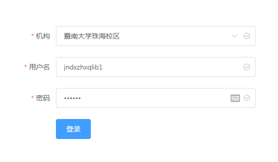 1.登录:输入平台网址后,点击首页读者荐购入口进入登录界面,输入对应机构,填写账号密码,点击“登录”。