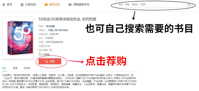 2.1 图书选定:挑选自己想要的图书,进入详情页,点击荐购。