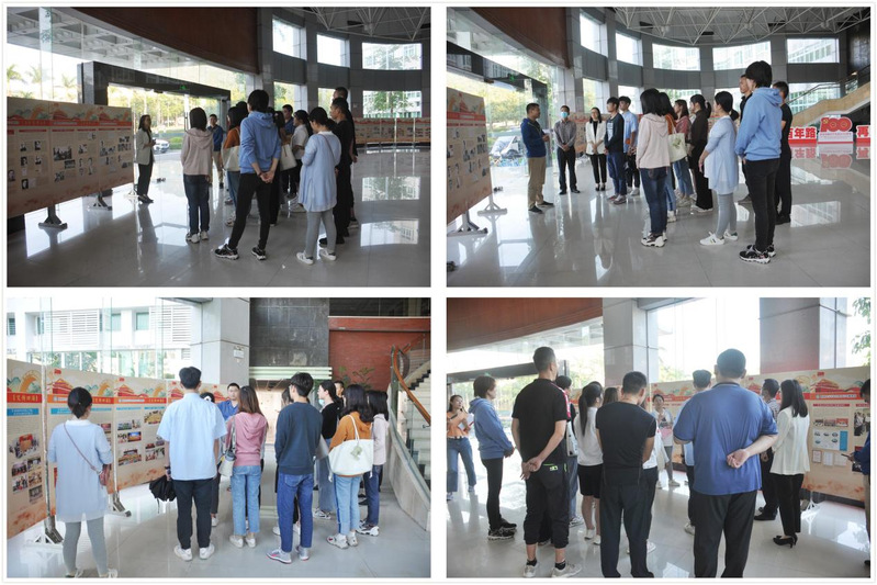 共建活动首个环节为参观学习“许党报国 勇毅弦诵”暨南大学百年红色印记专题展览(珠海校区分展馆)及“暨南人讲校史”。校区机关及直属单位党总支第一支部成员夏少云、刘锡赟、王翠作为校友分别领学了部分展板内容,并结合此前在母校求学的经历分享了感悟和理解。全体成员通过参观和交流,深切地感受了百年暨南“与党同心”“为国担责”“文传四海”的办学历程,也通过聆听“口述校史”进一步增强了师生之间的情感纽带,提升了沉浸感和代入感。