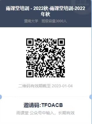 学校已部署了雨课堂智慧教学系统,有线上考试功能,为更好了解使用该系统,现开展雨课堂智慧教学系统——考试功能使用的线上培训,时间如下:2022年12月6日(星期二) 下午15:00—16:30,线上直播:请各位老师扫描雨课堂培训二维码,参加培训。