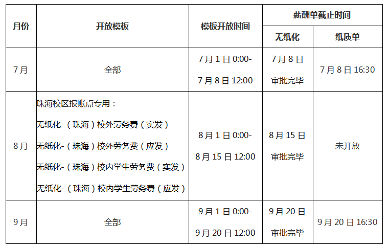 非无纸化薪酬单纸质版受理截止时间为9月20日16:30。请在规定时间内将薪酬单纸质版交至珠海校区行政办公楼122室。