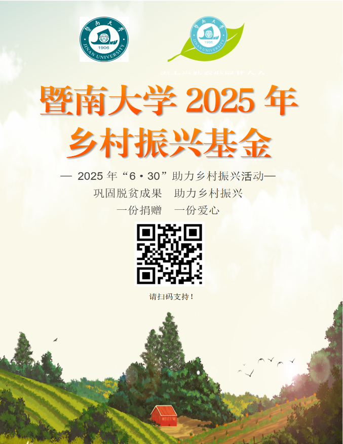 三、捐款方式:乡村振兴工作领导小组工作办公室联合暨南大学教育发展基金会设立“暨南大学2025年乡村振兴基金”,各单位通过“线上+线下”相结合的方式,组织开展好捐款活动。