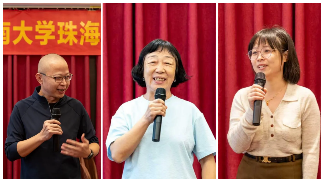 来校工作满30年教师代表、人文学院杨辉旭老师分享三十年暨南变迁,并表示将继续与暨南共同前进;退休教师代表王香平教授细数校园旧景,祝愿校区再上新台阶;新进教师代表梁朝茜老师则分享初来暨南的归属感与使命感,将向前辈学习,把热情投入教学科研。