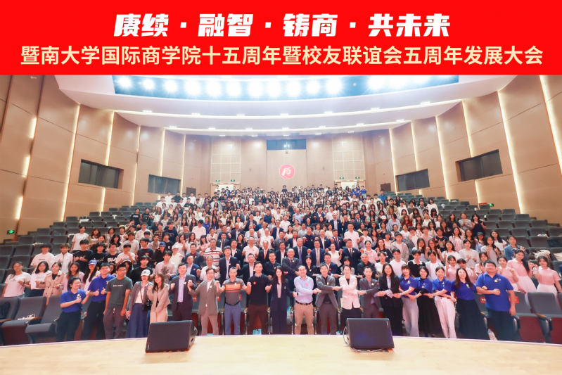 11月1日,暨南大学国际商学院十五周年暨校友联谊会五周年发展大会在暨南大学学术交流中心(珠海)举行。暨南大学董事会董事、中惠集团董事长叶惠全,暨南大学董事会董事、康泰生物董事长杜伟民,暨南大学副校长顾乃华,暨南大学校友总会会长、原校长胡军,暨南大学校友总会名誉会长、广东省侨联副主席、广东省政协委员罗定,暨南大学校友总会名誉会长、暨南大学教育发展基金会副理事长陈誉萍,珠海市台港澳事务局副局长黄远鸿,以及珠海校区各职能部门和兄弟学院的领导,各地校友会负责人,国际商学院师生、校外实践导师、校友代表们共计500余人参加大会,共同为学院十五载发展喝彩,为未来蓝图聚力。大会由国际商学院书记徐岗主持。