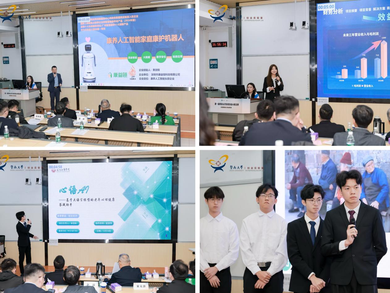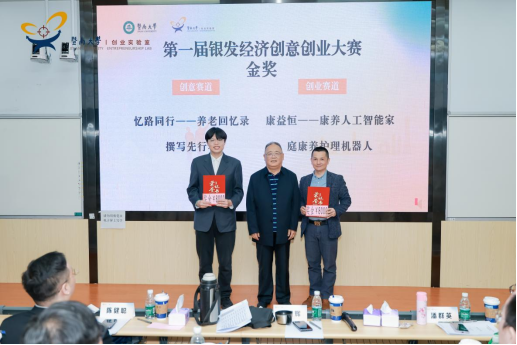 2025年12月14日下午,第一届银发经济创意创业大赛决赛在暨南大学珠海校区实验楼C113教室举行。大赛由暨南大学创业实验室与广东省创意经济研究会联合主办,旨在围绕“智享银龄·创引未来”主题,引导师生与社会力量共同关注老年人真实需求,探索银发经济的创新路径。来自暨南大学、广州华商学院及相关养老服务企业的13支队伍晋级本次决赛。