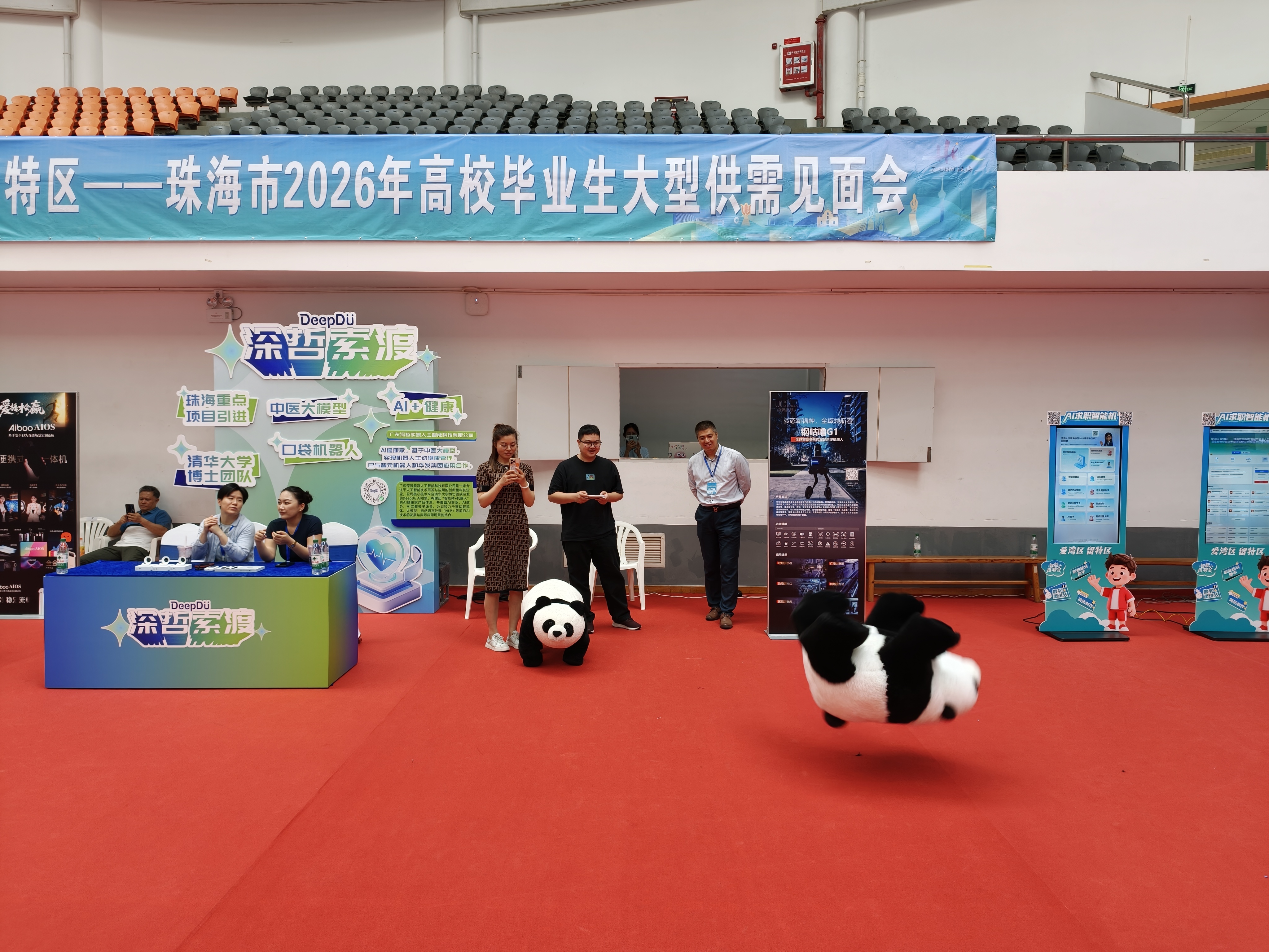 为进一步提升服务质效,现场组建由大湾区资深职场导师、创业导师、青年人才服务专员、校区生涯发展导师及征兵工作人员组成的“一站式”就业服务团,围绕留珠就业政策、人才补贴、职业发展等内容,为毕业生提供政策解读、简历优化、面试指导、征兵咨询等全方位精准服务,切实打通就业服务“最后一公里”。同时,招聘会深度融入数字化赋能理念,在科技展示专区设置AI求职体验区、直播带岗区和OPC创业成果展区,依托智能设备为学子提供AI便捷求职服务,助力岗位精准匹配;邀请极界机器人、深哲索渡、视熙科技等多个珠海本土优质创业项目团队,分享创业经验、展示前沿创业项目,进一步激发学子创新创业活力。