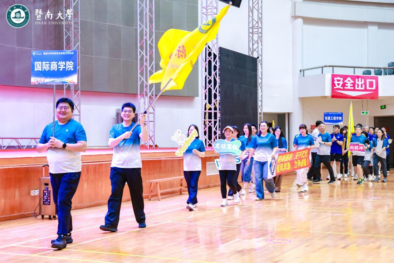 下午4时,伴着激昂跃动的暖场旋律,校区旗手步履铿锵率先入场,拉开了入场仪式的序幕。随后校区各单位以及丹田、中保、饮食服务中心联队依次列队进场。各参赛队伍着装整齐、意气风发,嘹亮的团队口号响彻场馆,充分展现了校区教职工与后勤保障团队团结奋进、朝气蓬勃的精神风貌。